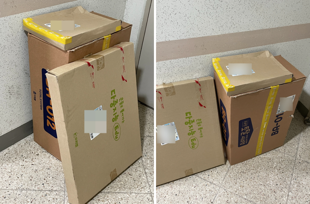 큰 박스 2개는 책 박스+교구 박스+나머지는 사은품