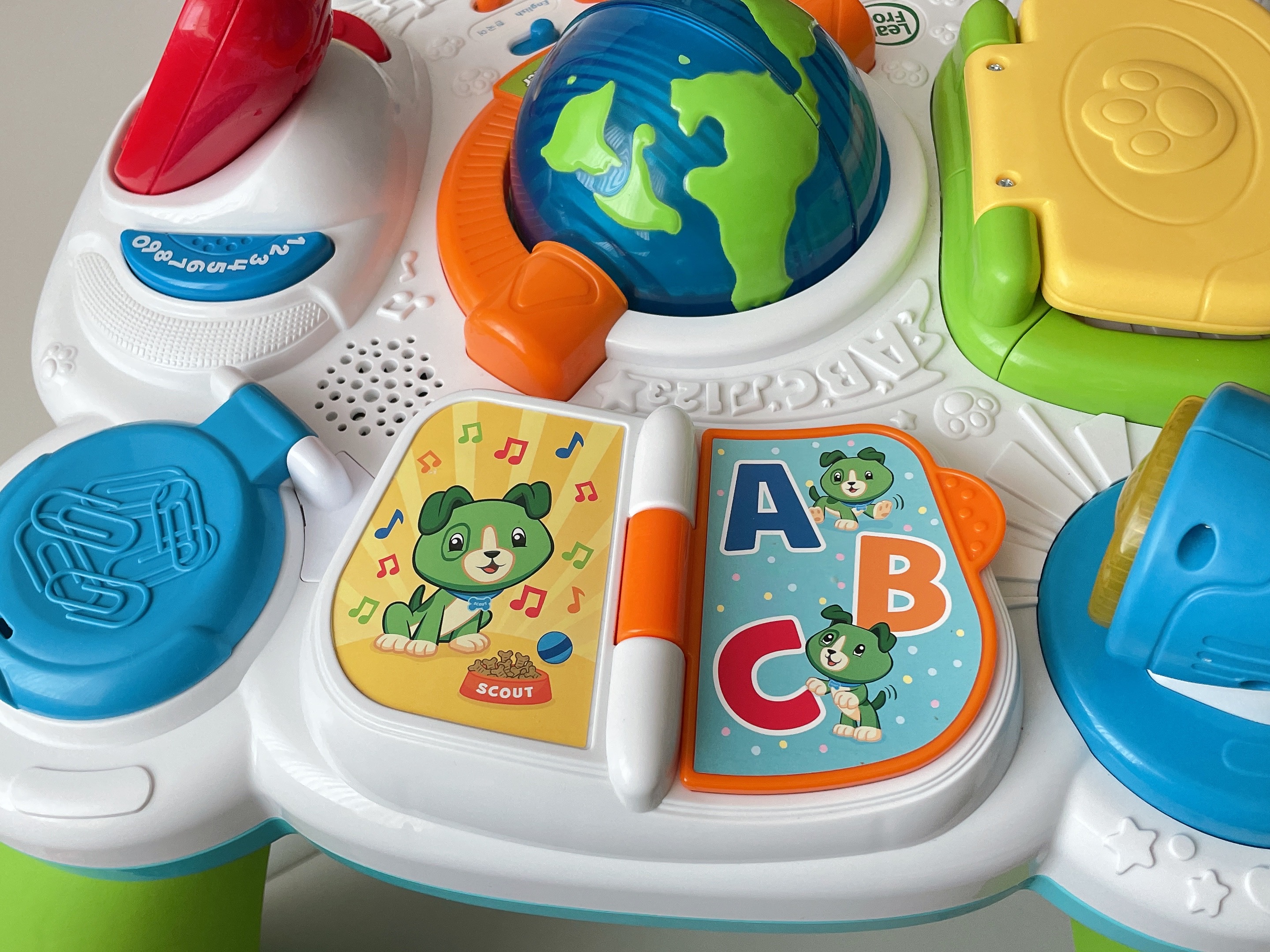 그밖에 책 넘기기, 불 켰다 끄기, 전화기 받기, 색깔 공부 등 다양하게 경험해볼 수 있는 러닝 테이블인데