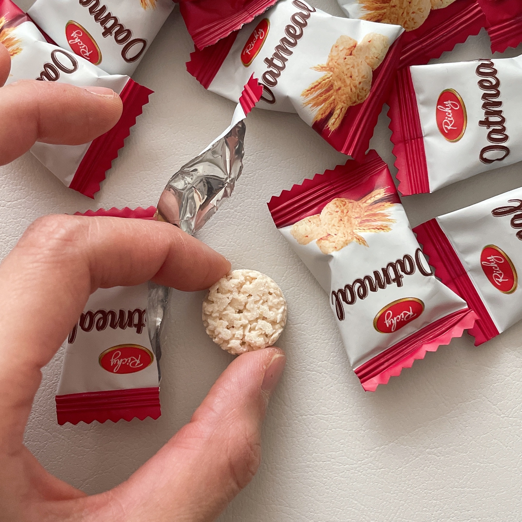 대충 계산해보니 1개당 12.8칼로리 정도 되는 것 같은 이 작은 사탕 봉지 오트밀.