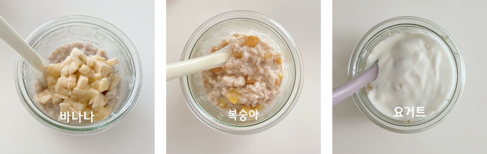 오트밀 이유식뿐 아니라, 어른들도 이런 식으로 각종 과일과 섭취해주시면 될 것 같아요.