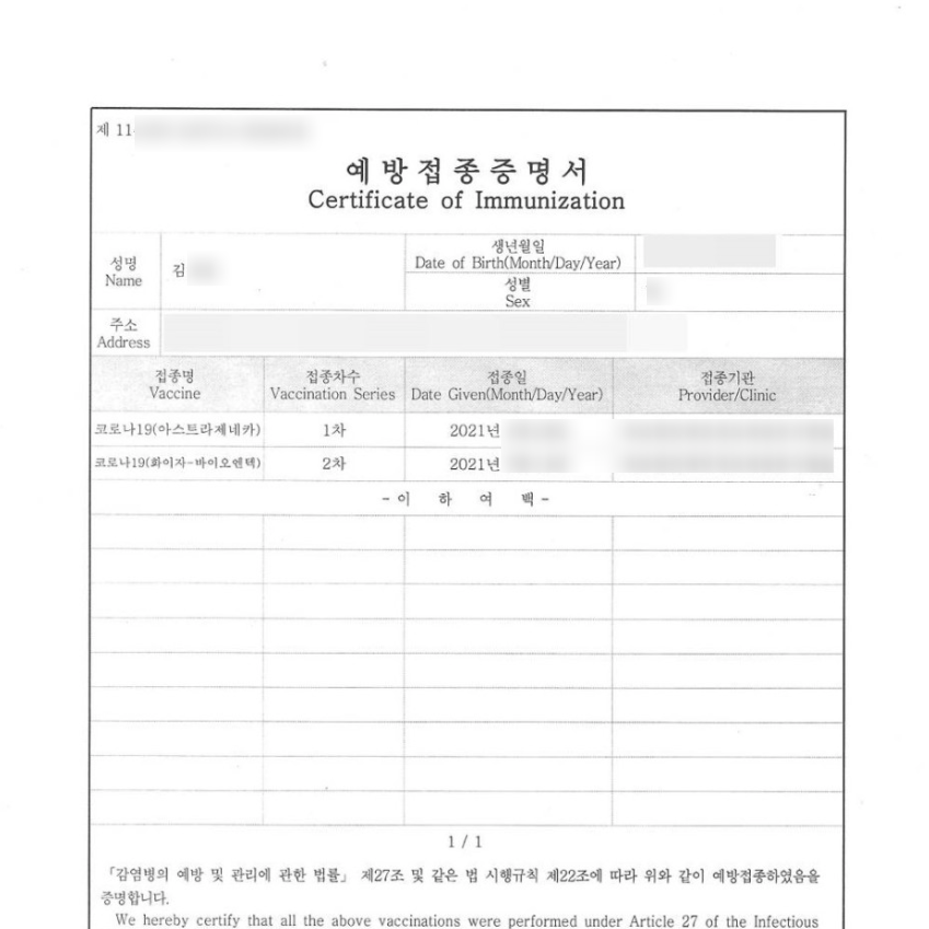 그럴 때는 종이 예방 법종 증명서로 백신완료증명서를 대신할 수 있어요.