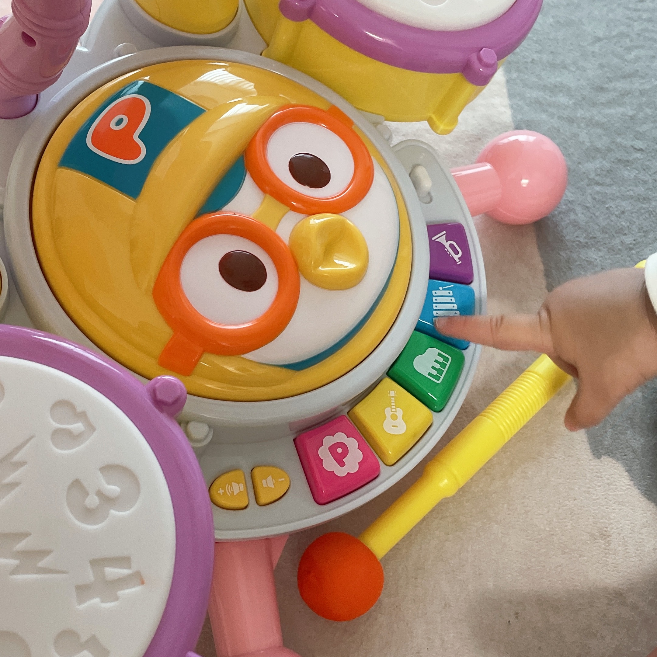 그 중 밀크가 너무 좋아하는 드럼놀이 뽀로로장난감 입니다.