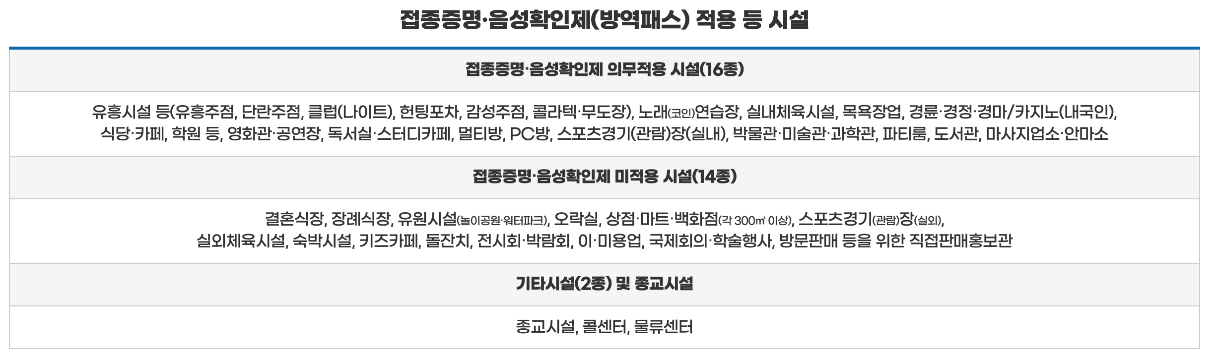 부산거리두기에서 추가된 방역 패스는 유흥시설, 식당, 카페, 영화관, 공연장, 등 접종 증명을 해야 들어갈 수 있습니다.