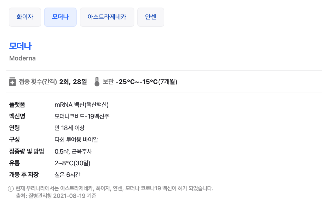 화이자가 조금 더 낮은 연령부터 맞을 수 있고 접종기간도 21일로 모더나 보다는 빠릅니다.