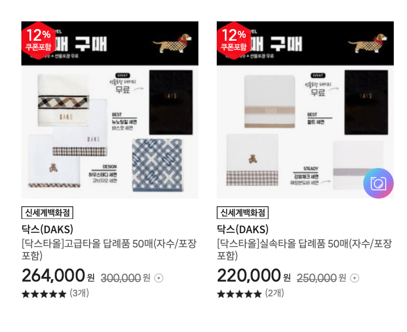 저는 측에서 주문했는데, '닥스수건 답례품'이라고 검색하니 50매 세트가 할인되어 판매하고 있더라고요