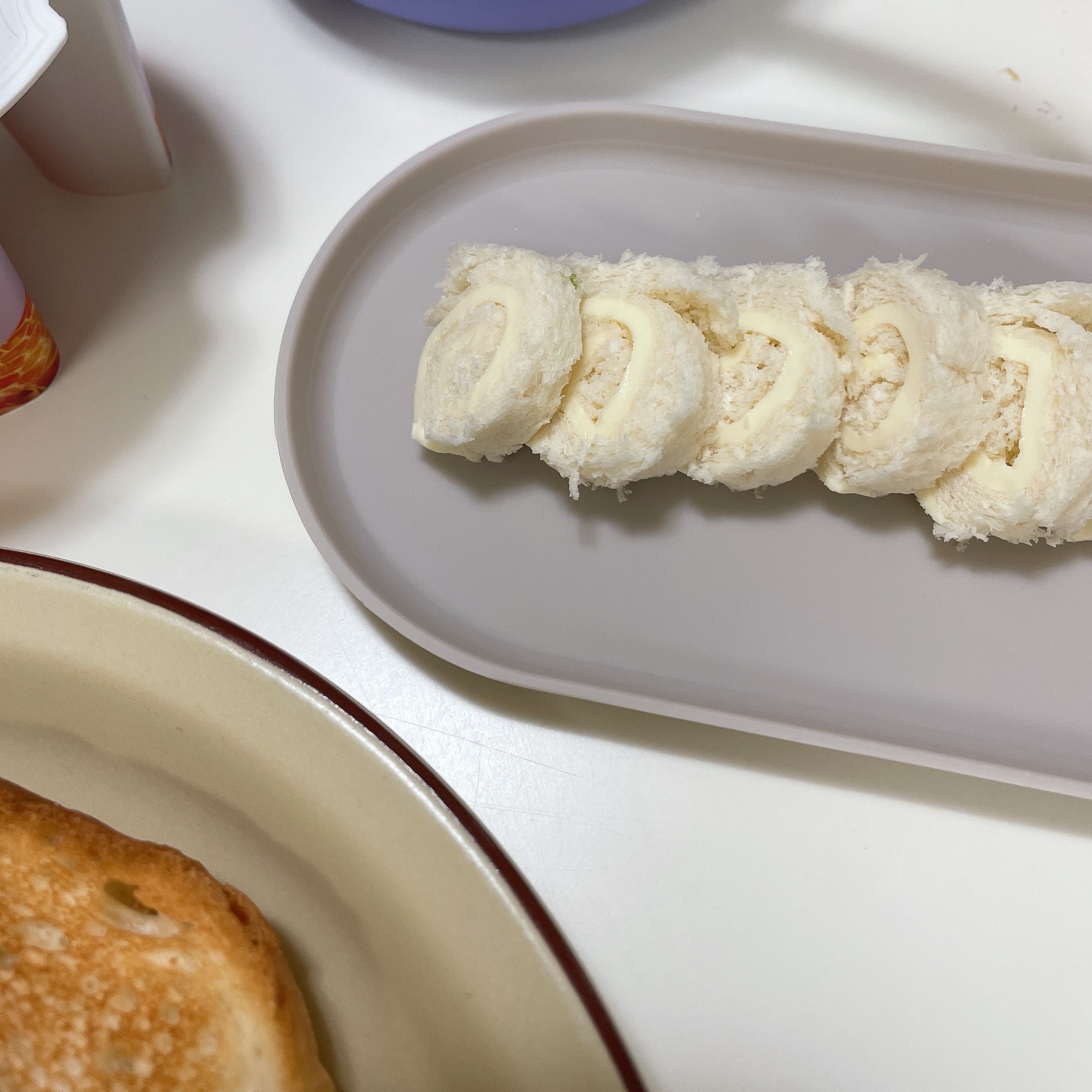 치즈를 올리고 돌돌 말아주면 예쁜 롤이 완성됩니다.