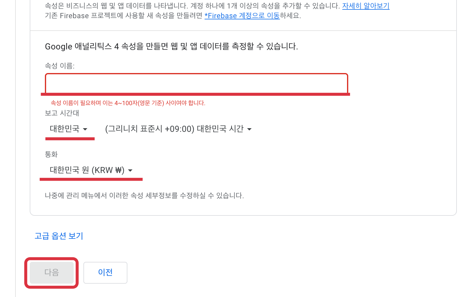 *여기서 '고급옵션보기'에서 유니버설 애널리틱스 코드까지 추가로 만들면