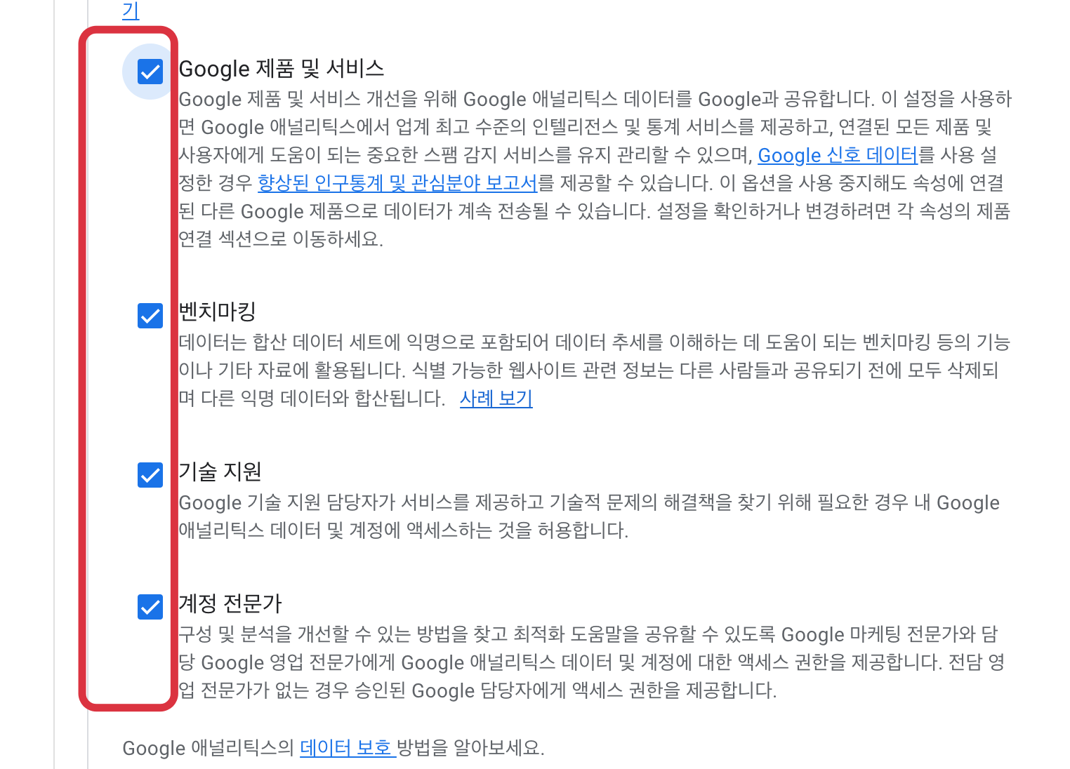거의 마지막 단계입니다. 구글 애널리틱스 서비스 약관에 동의를 해주시면 됩니다.