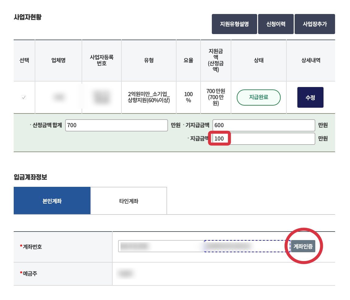 지난번에 소상공인 600만 원 받은 사람들을 대상으로 추가로 손실보전금 100만 원 주고 있어서 신청해서 받았습니다.