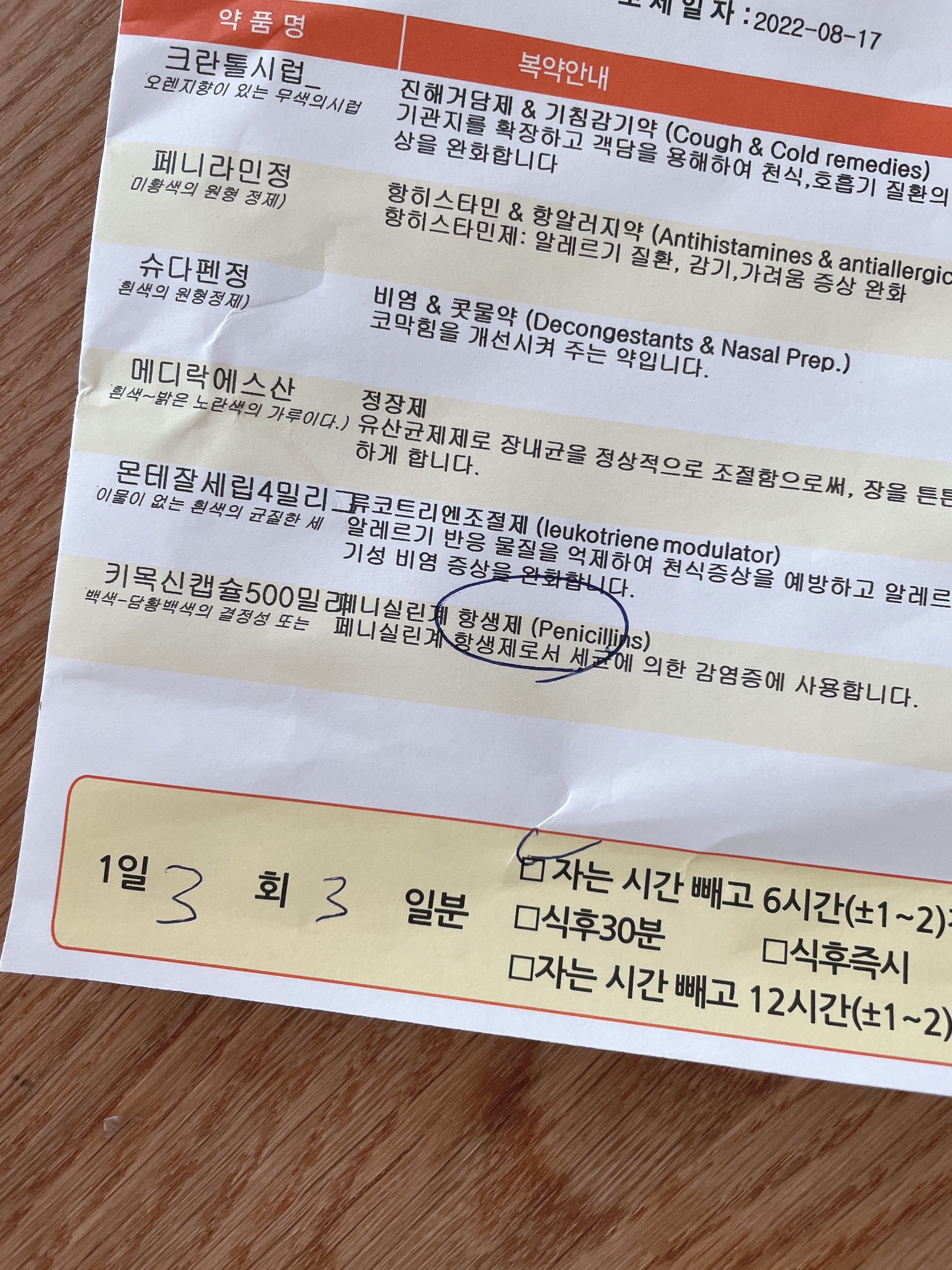 평소 아이가 감기가 심해지면 처방해주시는 평소 저희애가 먹던 항생제와 같은 약을 주셨어요.
