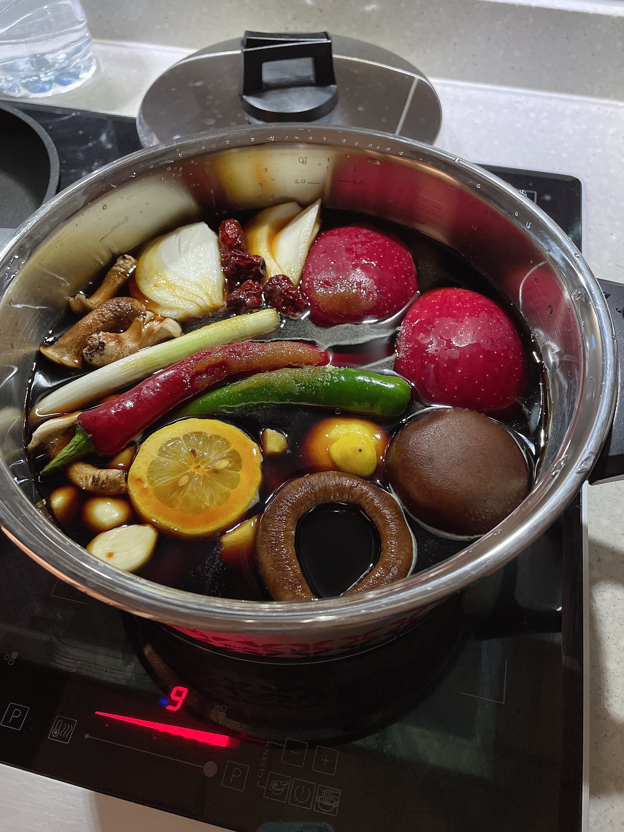 팔팔 끓기 시작하면 뚜껑을 비스듬하게 닫아주고 불을 중 약불로 줄여서 총 40분가량 끓여주고 식힙니다.