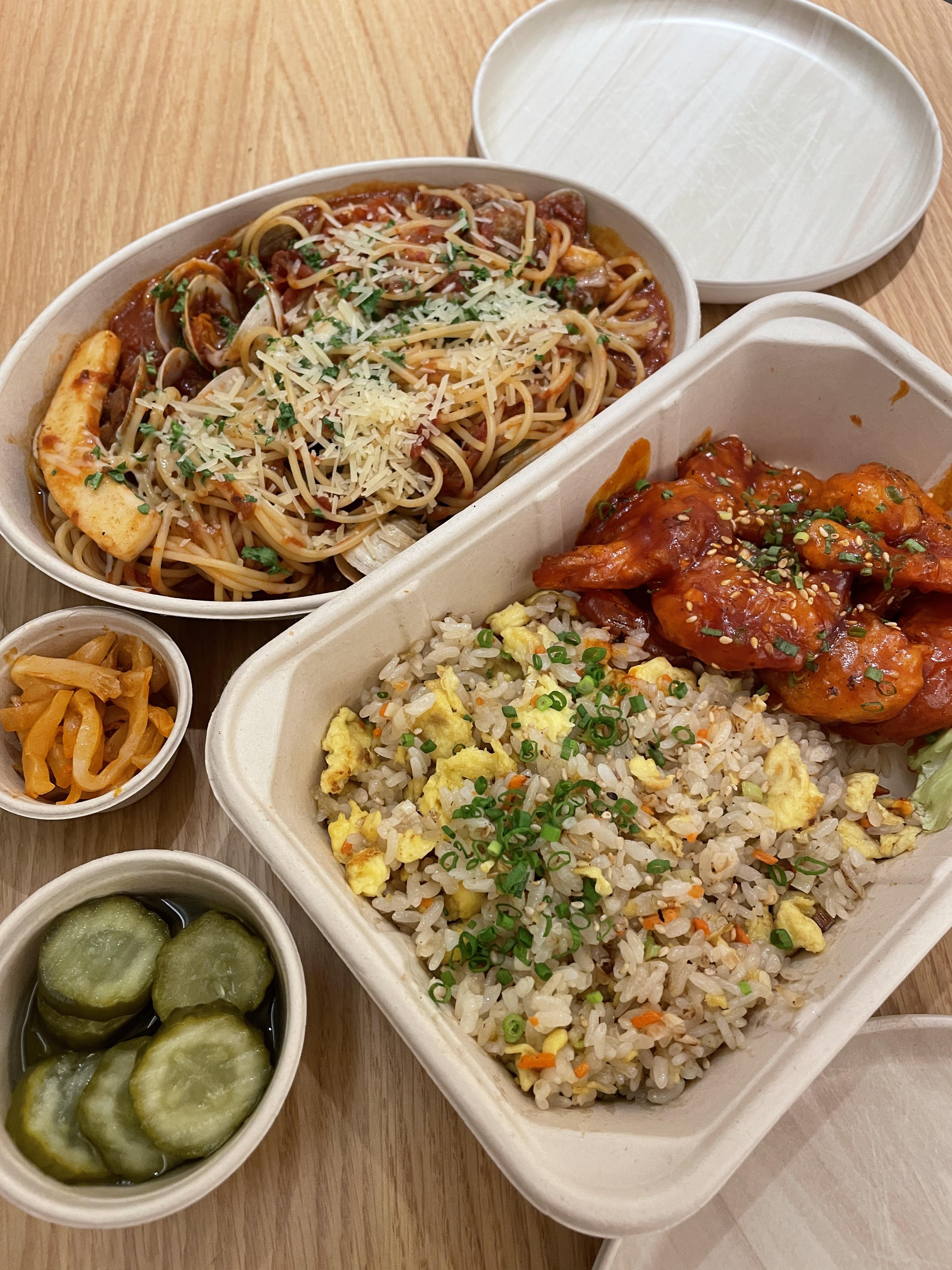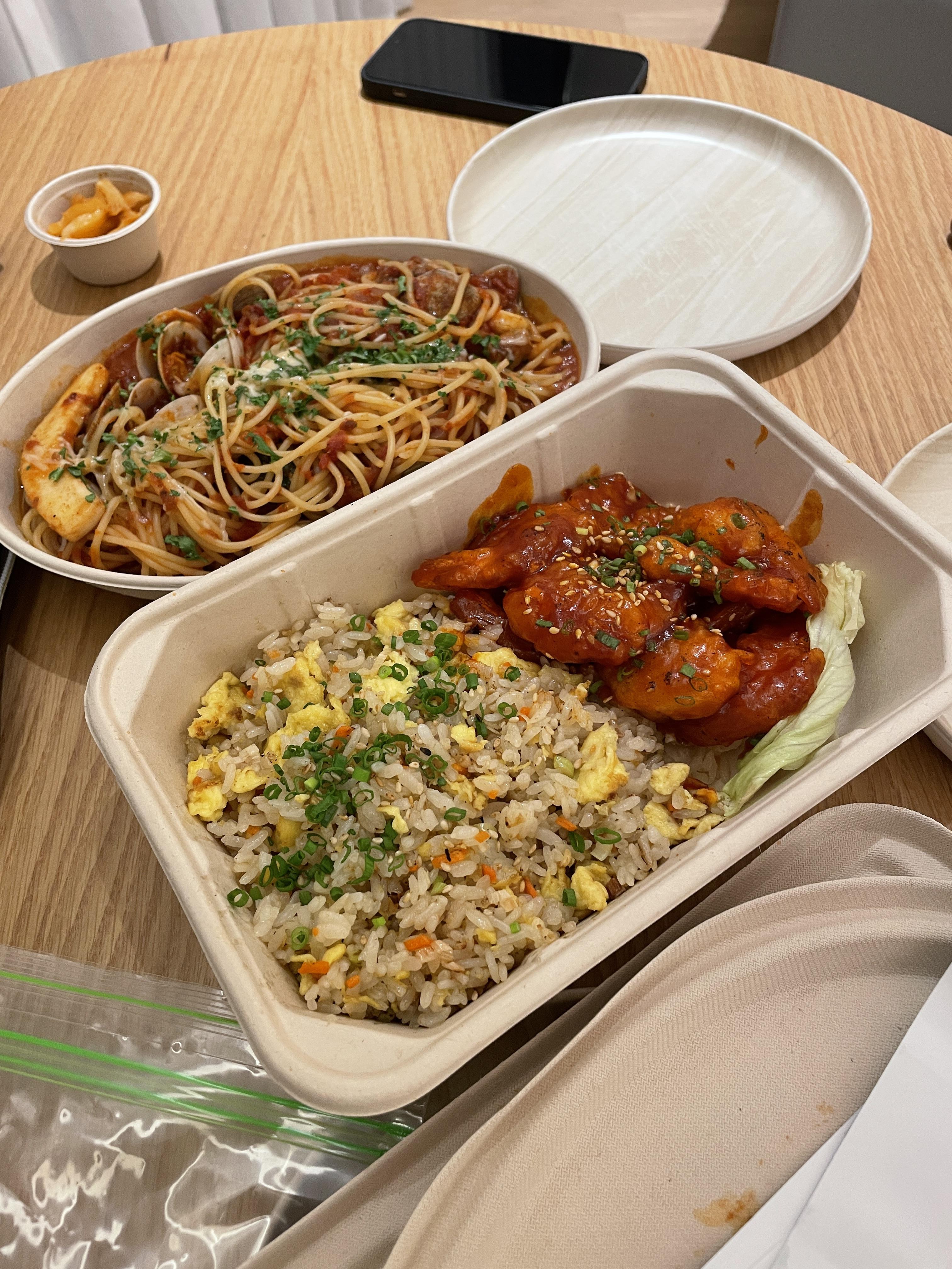 해산물 스파게티 (토마토로 선택) 31,000원 / 계란 차오판과 칠리새우 35,000원