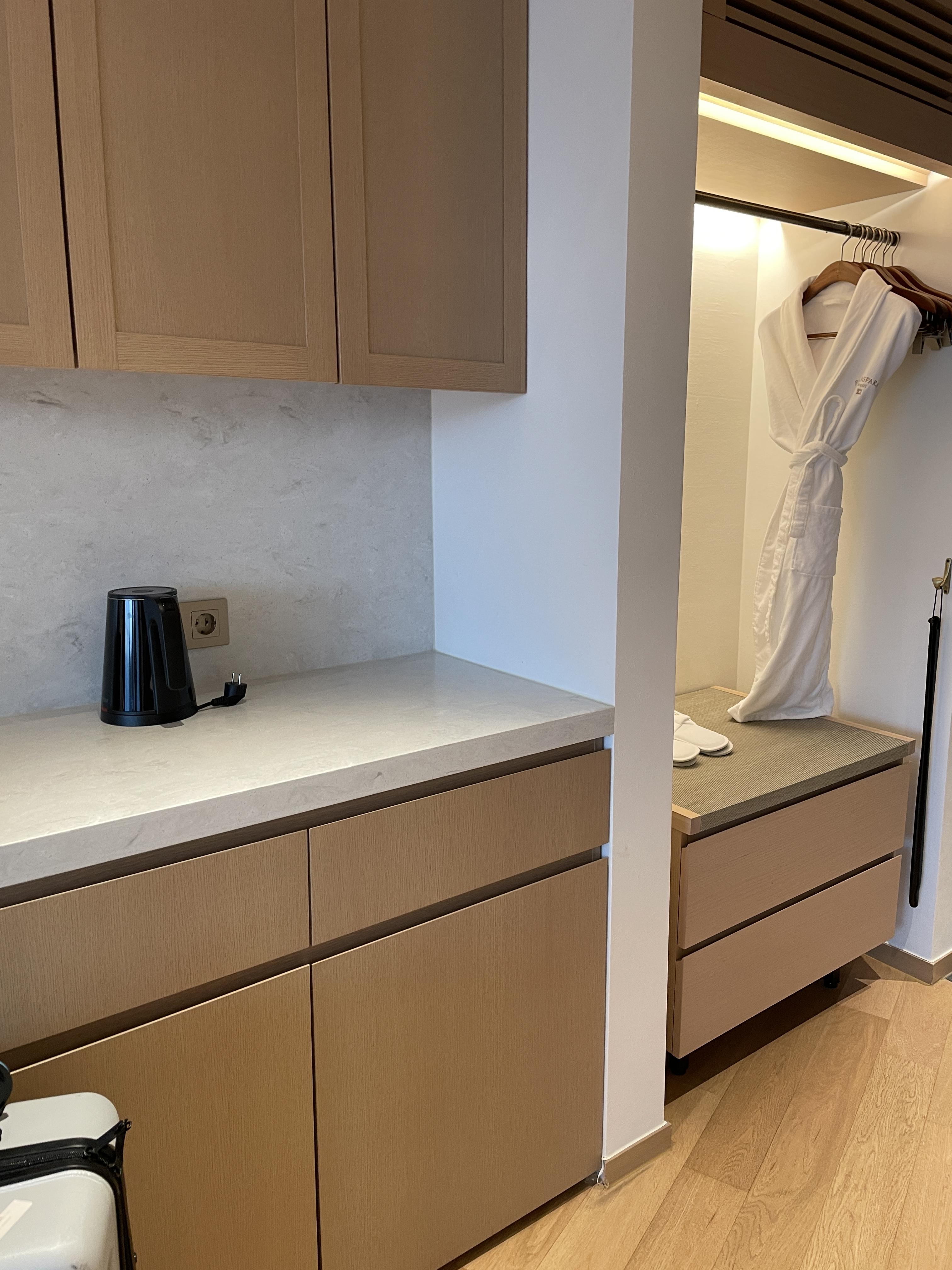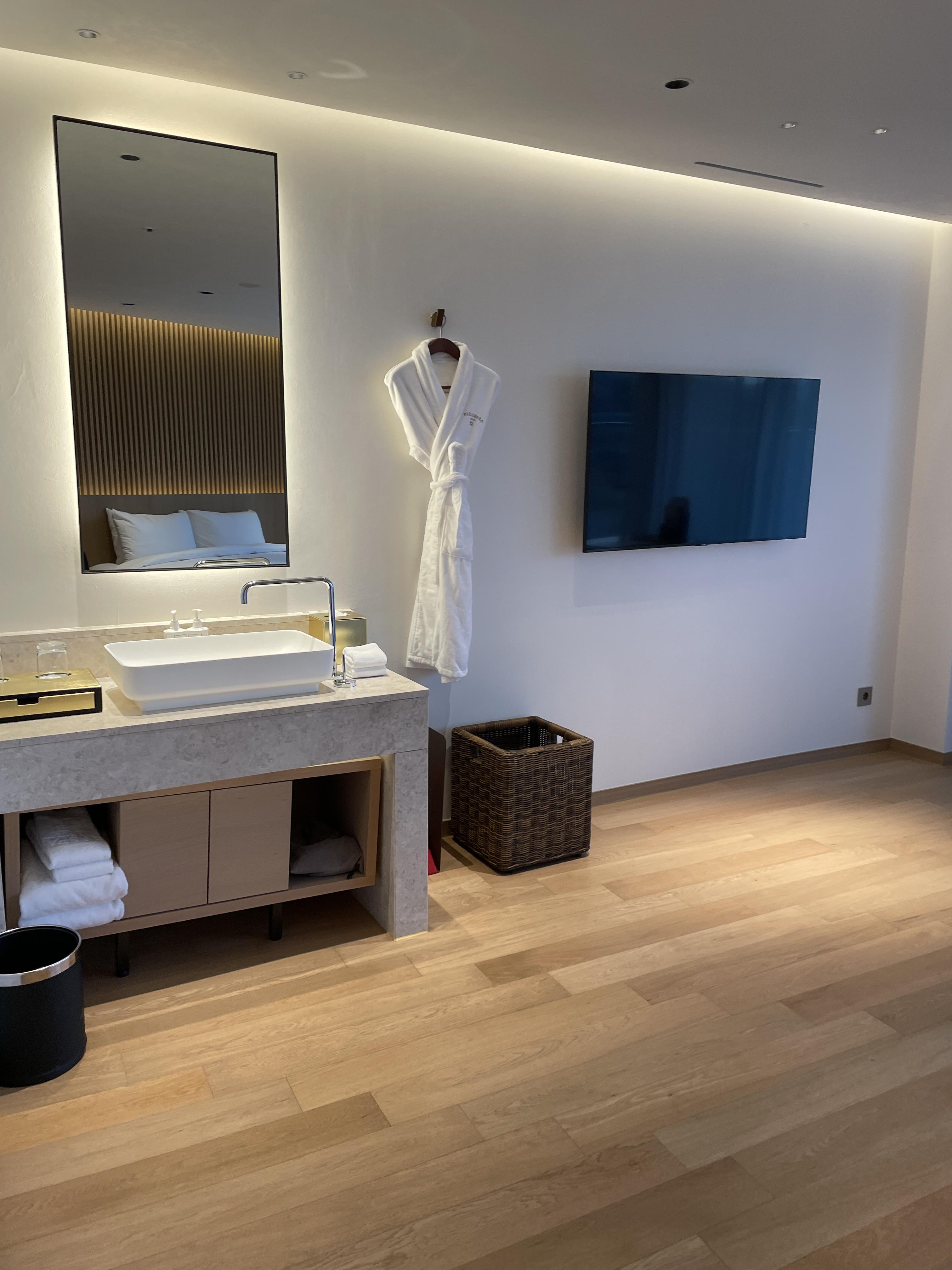 방에는, 가운이랑 헤어드라이기 빗, 칫솔, 치약 전부 구비되어있고 일회용 면도기는 없어서 저희 신랑은 못했습니다-!