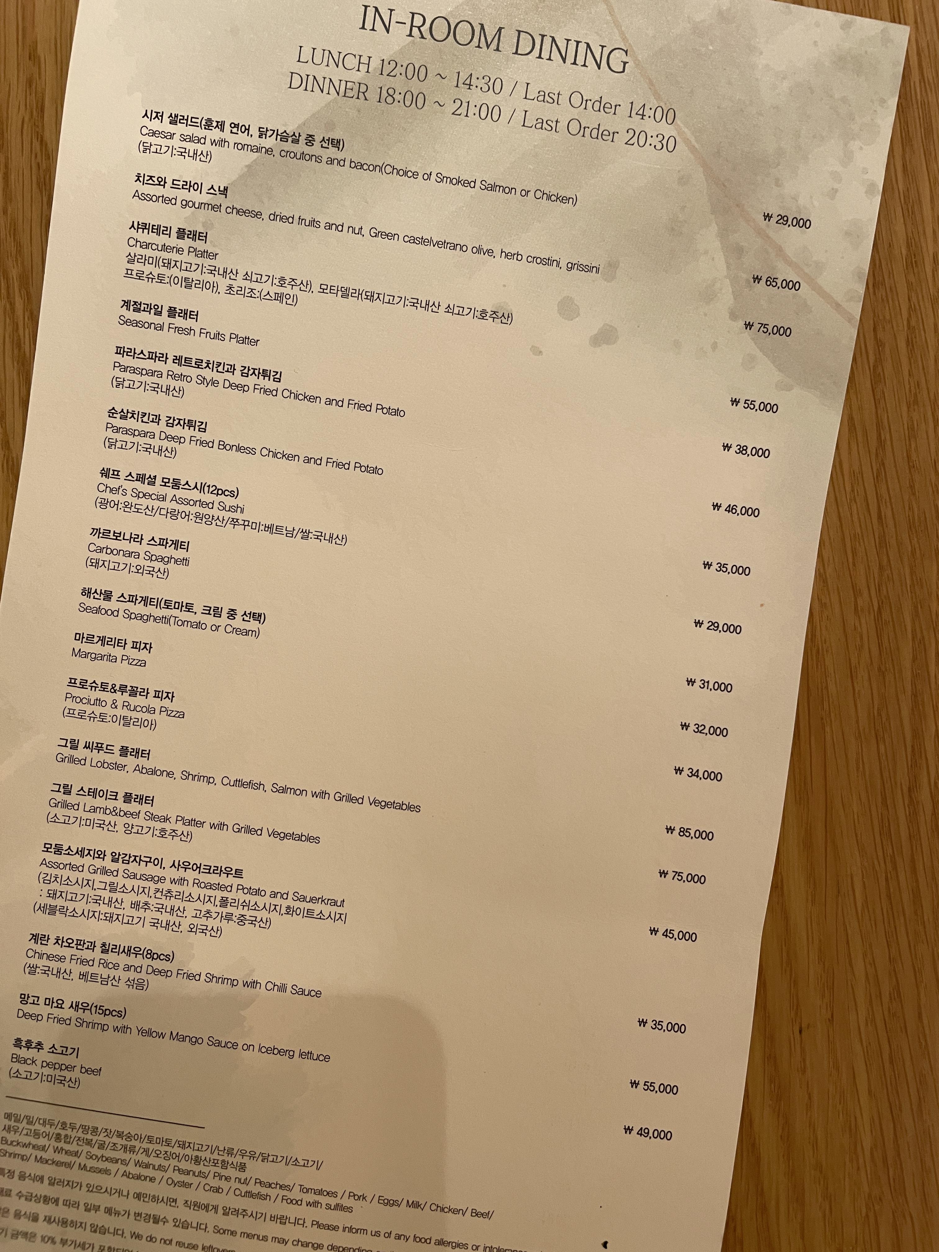 최종적으로 조식을 먹어보고는 굳이 디너 뷔페를 이용하지 않길 잘했다고 생각했어요. 그리고 배달음식은 스타벅스가 있는 정문까지 가야 하는 점이 조금 번거로울 것 같고, 놀러 온 기분도 내고 싶어서 편하게 아이를 씻기면서 룸서비스를 받기로 했습니다~ 결과는 대만족!